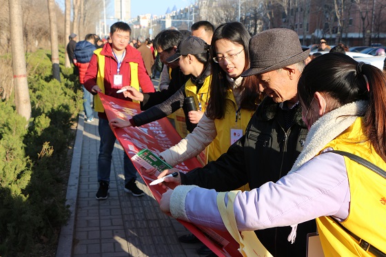 3月6日,由bat365官网学子和滨州众智社会工作服务中心联合发起的“关爱环卫工人,拒绝车窗抛物”学雷锋志愿服务活动在滨州银座中海店广场顺利开展。