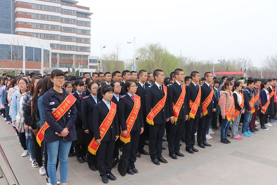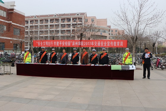 3月20日上午,bat365中文官方网站50余名学生在二餐广场参加了由保卫处举办的“安全文明出行,共建平安校园”2017交通安全宣传教育周开幕式活动。
