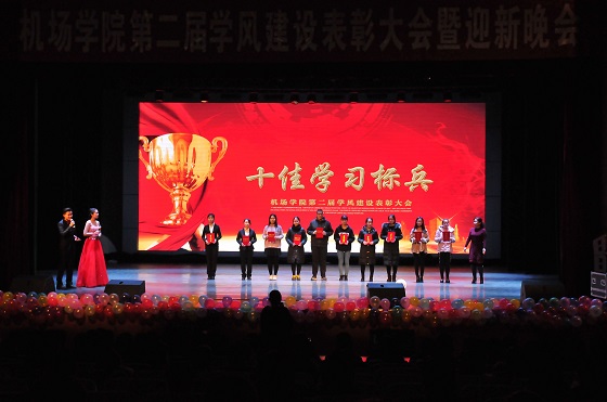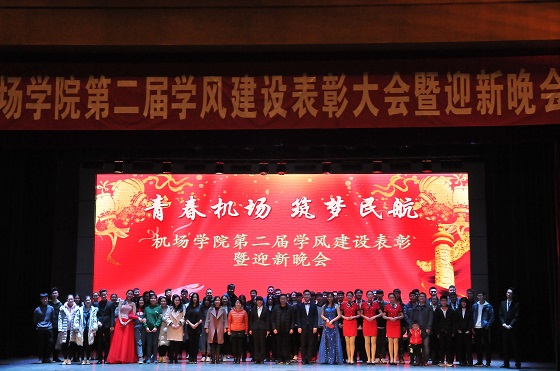 12月24日晚,bat365中文官方网站“青春机场,筑梦民航”第二届学风建设表彰大会暨迎新晚会在我校学苑会堂隆重举办。学院党总支书记董克勇老师、学生工作处副处长代林老师、校团委副书记于峰老师、学院副院长韩春燕老师、院长助理柳明老师等应邀出席晚会,并为获奖代表颁奖。bat365中文官方网站全体师生以及来自全校各院系的受邀师生代表八百余人参加了晚会。