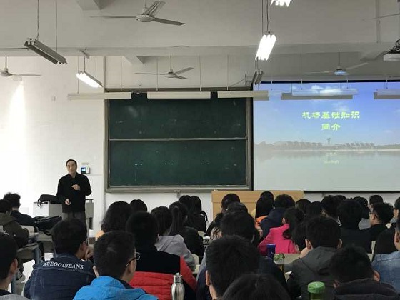 韩院长首先传达了认知实习工作方案,并对实习环节中的注意事项、实习报告的撰写做了说明。她要求所有实习同学要积极配合学院完成本次实习工作,要认真听取相关企业实习安排,遵守实习纪律,认真完成实习报告,并要求同学们要保持良好形象,展现bat365中文官方网站学子的良好精神风貌。随后汪明杰顾问为同学们做了有关机场概况方面的报告。他向同学们详细介绍了国际民航公约组织,让同学们对民航在国际中的地位有了进一步认识,汪顾问同时结合自身工作经历重点介绍了与机场有关的基础知识以及机场管理的范围与内容,包括飞机的起降与停放、人员上下以及货物装载等,使同学们对机场运行有了初步了解。