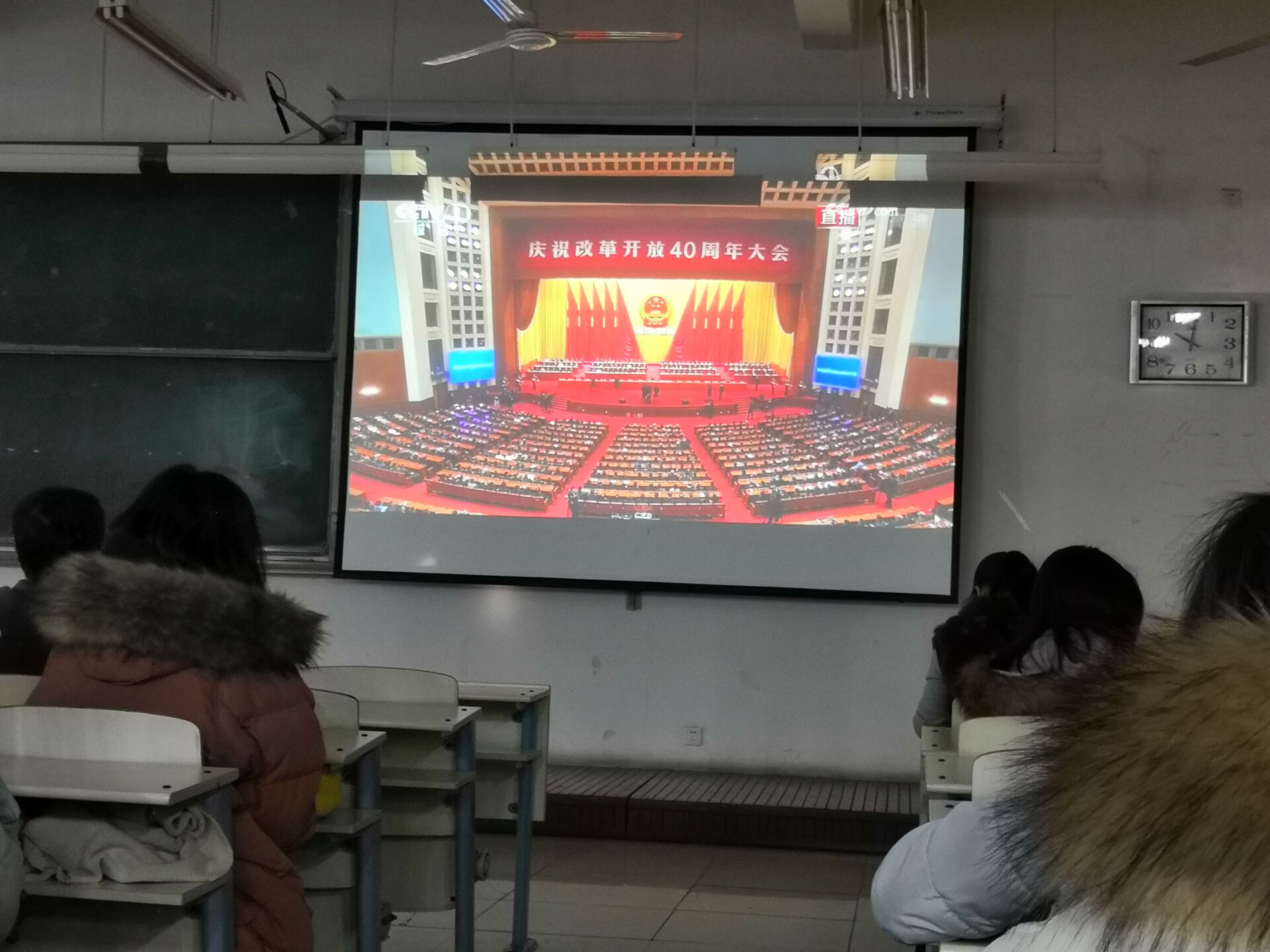 12月18日上午,庆祝改革开放40周年大会在人民大会堂隆重举行。bat365官网在工科楼2-112教室组织师生观看大会直播盛况聆听习近平总书记发表的重要讲话。
