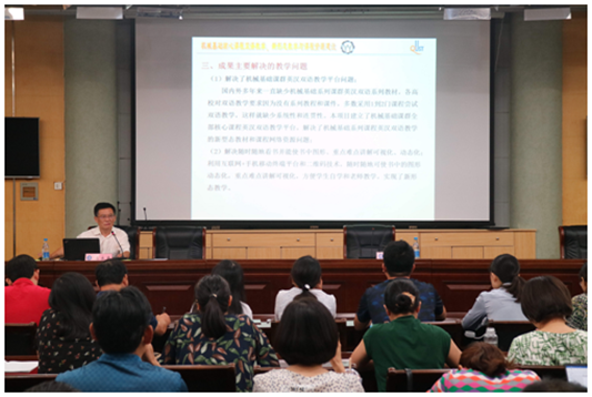 王永岩以2018年国家级教学成果奖获奖成果《机械基础核心课程双语教学、新形态教学与课程资源建设》为例,从成果建设基础、成果主要解决的教学问题和解决问题的方法、成果的创新和推广应用、成果奖申请注意事项等方面介绍了如何做好教学成果培育和成果奖申报。最后结合自己多年教学和研究经验,鼓励我校教师要努力学习、勤于总结、肯于吃苦、打造精品。