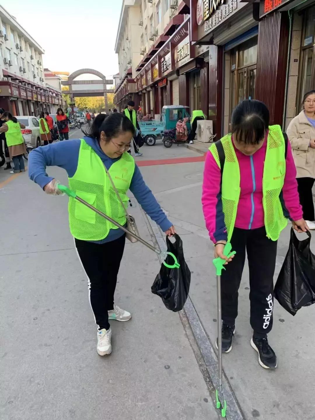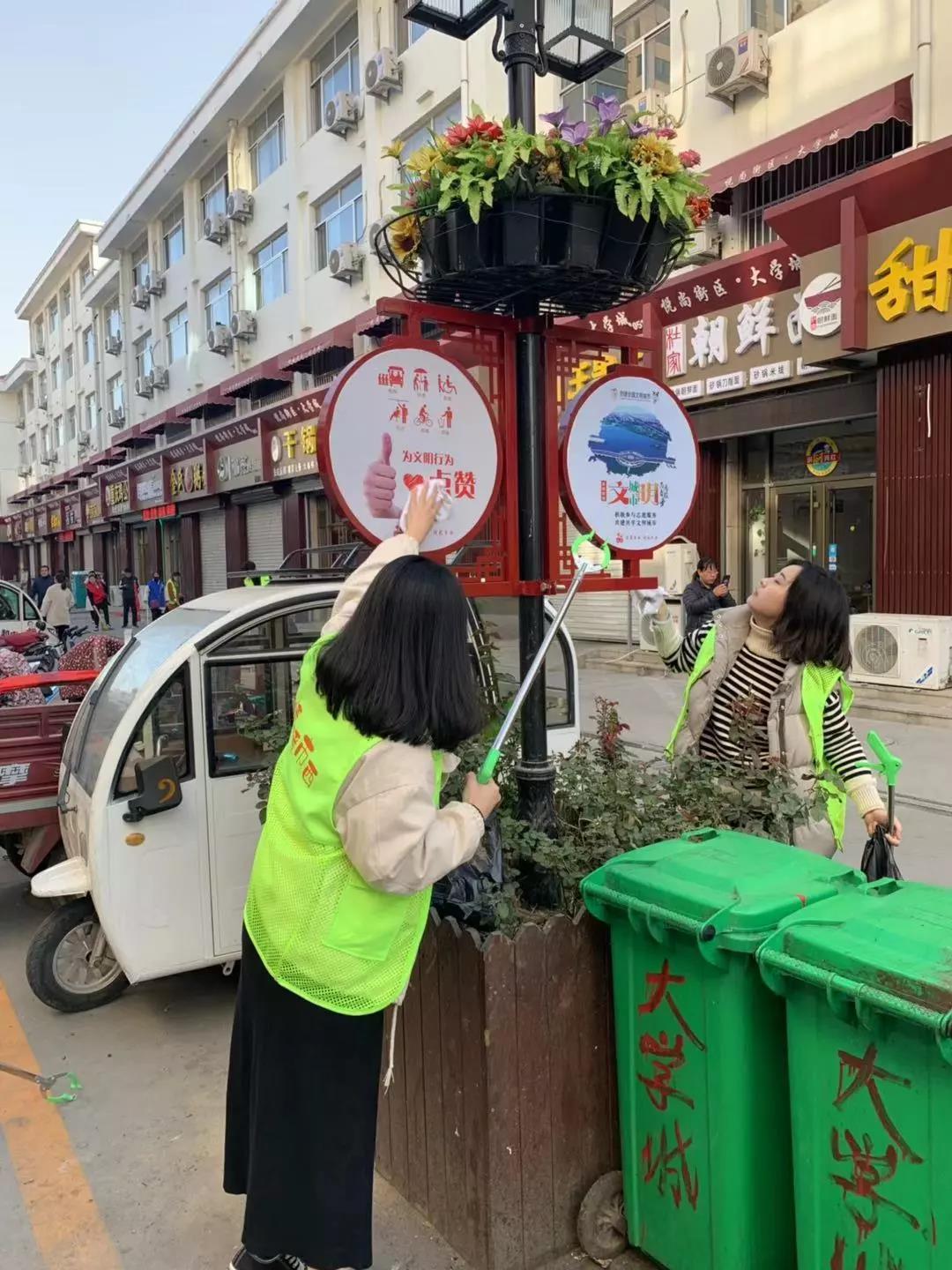上8点,大家便分头行动,有的同志负责清理垃圾,利用垃圾夹、扫帚等工具将路边散落的塑料袋、落叶、烟头等清理干净;有的同志负责擦拭广告牌、宣传栏;有的同志则负责将店铺门口、街道两旁的共享单车以及各店铺的私人单车摆放在专用停车位上。经过一个多小时的“战斗”,文化城面貌便焕然一新,经过细心清理后的路面显得更加干净宽敞,经过擦拭之后广告牌看上去更加干净、明亮,经过摆放后的电动车自行车看上去更加整齐。