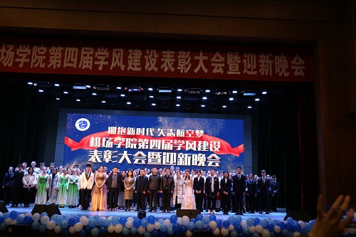 2020年新年到来之际,bat365中文官方网站于12月28日晚在学苑会堂举办了主题为“拥抱新时代 矢志航空梦”的第四届学风建设表彰大会暨迎新晚会。学院党政班子成员、全体辅导员班主任和学院全体在校学生参加了活动。