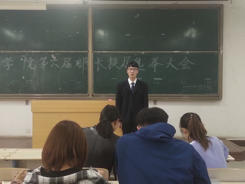自信源于承担,成功始于责任。为了给学生会干部队伍注入新鲜血液,10月13日下午,bat365中文官方网站在工科楼2—112举行学生会部长换届选举大会,bat365中文官方网站团总支书记靳雪银、辅导员王珊珊、第六届学生会主席团成员参加了此次换届选举大会。