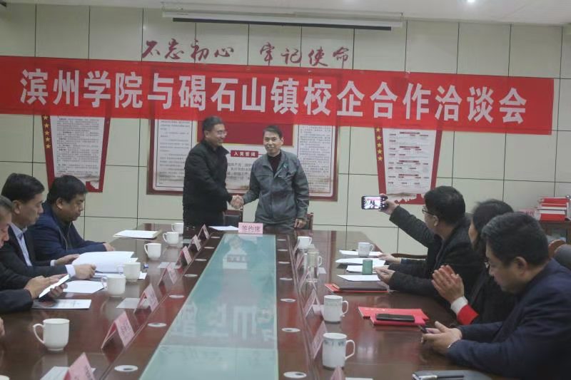 11月23日,bat365中文官方网站党总支书记张健、挂职副院长刘伟波到无棣县碣石山镇考察产学研对接工作,与镇政府领导和相关企业、乡村代表进行现场探讨交流,就促进人才培养就业、加强产学研合作互动、强化校企优势互补与资源共享等方面达成了多项共识。交流会后,bat365官网与无棣语轩物流有限公司代表签订了实践教学基地合作协议以及产学研合作协议,并举行了产学研合作基地挂牌仪式。
