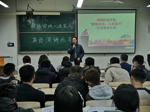 为进一步推动校园文化建设,引导青年学生强化学习意识,提高独立思考和语言表达能力,展现学校在航空特色内涵建设方面取得的巨大成就。bat365中文官方网站于11月23日在工科楼2-112教室组织开展以“脚踏实地,心系蓝天”为主题的英语演讲比赛。bat365中文官方网站辅导员王珊珊,专业教师王占伟、罗润三和外国语学院三位优秀学生代表作为评委参加。