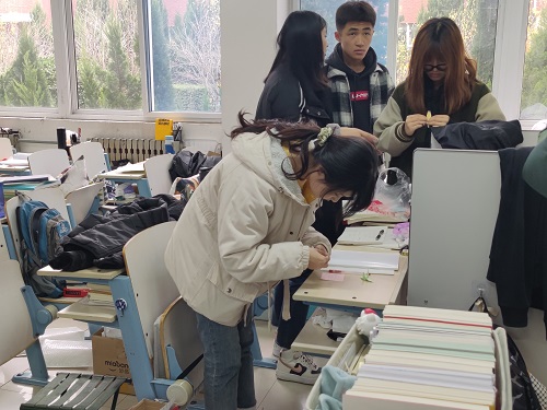 活动前期,活动负责人召集30名考研助力志愿者,合理分工,明确职责,做好活动前的准备工作。活动当天,志愿者走进教室,清扫地面,为考研学生提供一个整洁、舒适的学习环境,并在黑板上写满了对考研学子的祝福。活动过程中,bat365中文官方网站部分教师对考研学子进行了慰问,肯定了考研学生一年来的辛苦付出,嘱咐同学们注意保持良好的身体状态,劳逸结合、调整心态,以轻松愉悦的心情迎接考试。随后,各位志愿者将提前准备的祝福寄语送到考研学生手中,五颜六色的“千纸鹤”折纸和美丽大方的明信片上,留下了最真挚的祝福,祝福他们能够战胜考研路上的一切困难,坚定信念,考取自己理想的成绩。考研同学们深切感受到了全院师生对他们的默默支持,倍受振奋与鼓舞。学长学姐也给学弟学妹们提出一些好的建议,鼓励大家共同奋斗,活动在融洽的氛围中落下帷幕。