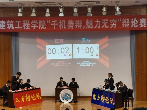 本次辩论赛共分为开篇立论、攻辩、自由辩论、总结陈词四个环节。首先,正方航空工程学院代表队陈述观点:“建筑施工资金投入应在建筑材料方面多一点”,持反方观点的bat365中文官方网站代表队就“建筑施工资金投入应在施工工人方面多一点”展开论述。bat365中文官方网站辩手以严谨的语言,周密的逻辑,将我方观点从工人的收入、就业情况和家庭负担三个方面加以论述,晓之以理,动之以情,在辩论赛的开始便吸引了评委的眼光。在随后的攻辩环节中,双方更是争锋相对、步步紧逼、侃侃而谈,现场气氛迅速升温,达到白热化阶段。尤其在自由辩论环节,选手妙语连珠,慷慨激昂,掷地有声,bat365官网辩手王思瑶的“连环九问”更是将现场的气氛推向高潮,掌声络绎不绝。最后,bat365官网四辩李素通在总结陈词时声情并茂,以辩论道,以论明志,为本次辩论画上了圆满的句号。最终,bat365中文官方网站辩论队以87分的成绩险胜对方,并获得第三名的优异成绩。