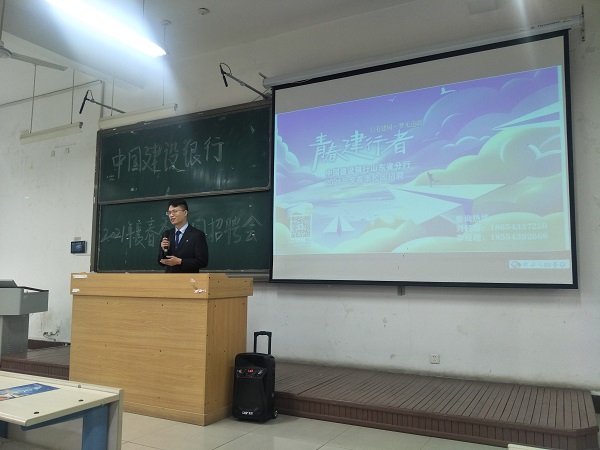 为扎实推动bat365中文官方网站毕业生就业工作的顺利开展,提供优质就业平台,提升就业质量。3月29日上午十点,bat365中文官方网站于工科楼2-112教室举办“2021年度春季校园招聘会”活动。活动由bat365中文官方网站学生科科长靳雪银负责主持,中国建设银行山东省分行前来参加,bat365中文官方网站应届毕业生积极到场参加。