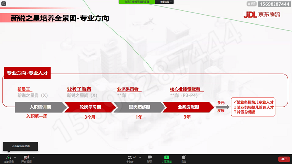 此次会议采用线上+线下的形式开展,严格落实疫情防控要求,以视频会议的方式同大家见面。会上借助京东物流发展的宣传片,向同学们介绍了京东集团的发展规模和京东物流的强劲实力,并着重向同学们详细解读了京东物流2022“新锐之星项目。他指出,新锐之星项目是京东物流战略性人才招募及发展项目,旨在通过设置一线历练、轮岗学习、管理历练等体系化的3年培养,打造出一支具备京东精神,深耕物流业务,聚焦基层管理和专业成长的新锐之师,支持物流下沉战略落地与区域经营转型。同时,负责人王聪还就同学们关心的专业对口、所需人才素质、实习生的发展机会和上升空间、劳动的薪资待遇与福利等问题进行了详细的介绍。他还指出,公司也会开展相关技术培训会,请同学们不要有过多的顾虑。最后,在互相交流环节,认真解答了同学们的疑问,并真诚地希望各位同学顺利实现自己的梦想,不负青春美丽韶华。至此,此次招聘宣讲会在热烈的掌声中圆满结束。