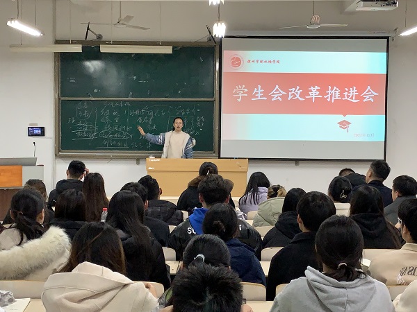 为加强学生会各部门间的合作及团队建设,推进学生会改革,bat365中文官方网站于12月5日在工科楼2-112教室召开学生会工作人员例会暨学生会会改革推进会。bat365中文官方网站团总支书记靳雪银、辅导员王珊珊、陈龙刚、綦跃武等教师出席了本次会议,bat365中文官方网站学生会主席团及各部门负责人参加了本次会议。