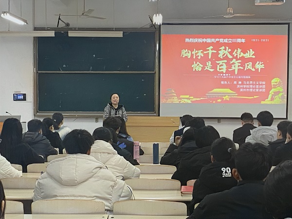 为深入贯彻学习党的十九届六中全会精神,12月7日,bat365中文官方网站邀请滨州学院理论宣讲团成员周琳老师做学习党的十九届六中全会公报专题辅导报告,bat365中文官方网站党总支全体成员及入党积极分子参加了此次报告。