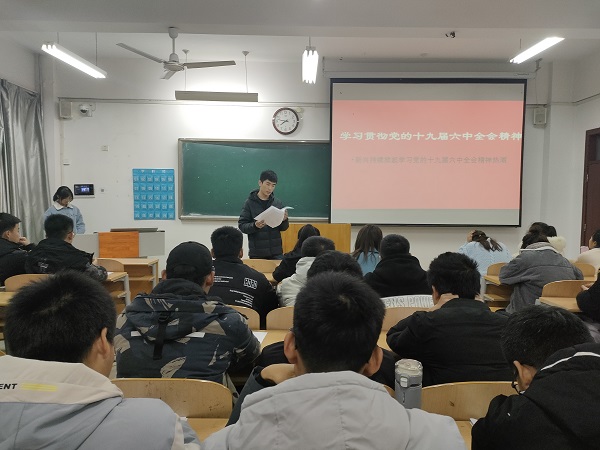 本次主题团日活动,在各班团支部书记的组织下于教室观看党的十九届六中全会公报、决议等有关视频,认真学习贯彻党的十九届六中全会精神。对于我们每一位同学来说,总结党的百年奋斗重大成就和历史经验,是开启全面建设社会主义现代化国家新征程以及新时代发展中国特色社会主义的需要,是推进党的自我革命、提高全党斗争本领、为实现中华民族伟大复兴的中国梦而继续奋斗的重大需要。在团支部书记的带领下,同学们集体朗读《中共中央关于党的百年奋斗重大成就和历史经验的决议》,同学们在浓厚的氛围下感受党的十九届六中全会精神所在。在交流互动环节,同学们积极发言,从自身学习实际出发,分享自己的观点,畅谈了自己所感所悟,起到了良好的学习效果。进入新时代,站在新起点,面对百年未有之大变局,中华民族伟大复兴已经迈入不可逆转的伟大进程。