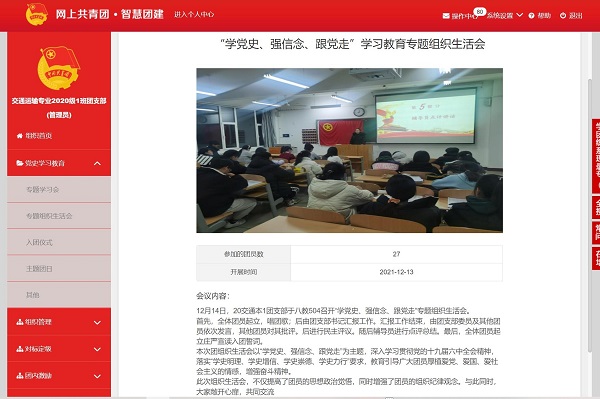 为引导广大青年团员深入学习贯彻党的十九届六中全会精神、习近平总书记“七一”重要讲话精神,贯彻落实“学史明理、学史增信、学史崇德、学史力行”要求,12月5日至17日,bat365中文官方网站各团支部开展了“学党史、强信念、跟党走”专题组织生活会。
