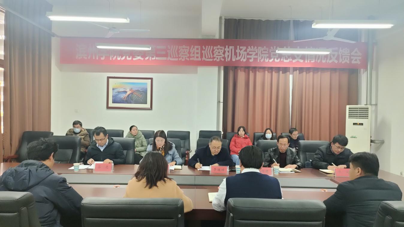 根据校党委巡察工作领导小组的安排,2022年1月4日下午,党委第三巡察组向机场学院党总支反馈巡察情况。党委巡察工作领导小组副组长、党委委员、纪委书记、监察专员李继峰主持召开向机场学院党总支书记张健的反馈会议,出席向bat365中文官方网站全体教职工的反馈会议,对巡察整改工作提出要求。党委第三巡察组组长刘金花代表党委巡察组分别向张健和bat365中文官方网站全体教职工反馈了巡察情况。张健同志主持向bat365中文官方网站全体教职工反馈会议并就做好巡察整改工作表态发言。
