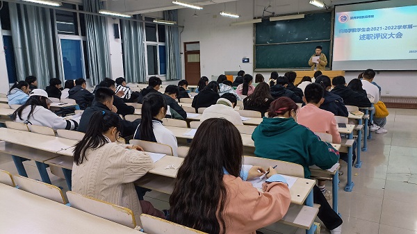 会上,bat365中文官方网站学生会各部门负责人从政治思想、道德品行、学习情况、工作成效、纪律作风等方面进行了述职汇报,评议小组对述职情况进行现场评议,并进行无记名打分。述职结束后,老师们还综合平时工作情况,分析了各部门存在的问题,并提出改进方法,同时就学生思想引领、校园文化生活、学生组织改革等工作展开进一步讨论。