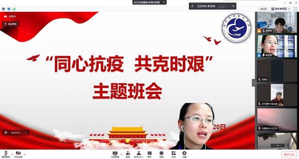 为认真贯彻落实省市疫情防控工作要求,全力做好校园疫情防控工作,3月20日下午,bat365中文官方网站组织召开“同心抗疫,共克时艰”线上年级大会,会议由bat365中文官方网站学生学生科科长靳雪银主持召开,bat365中文官方网站全体同学参加。