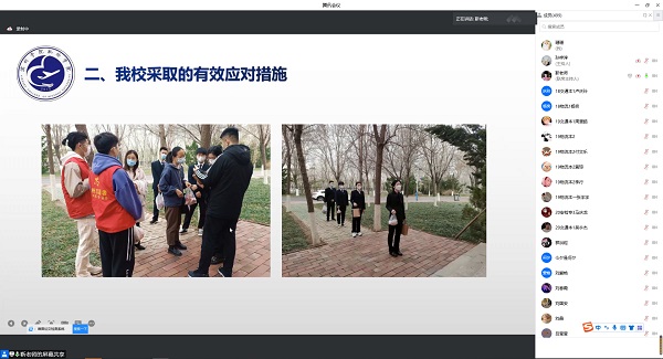 会上通报了目前滨州市的疫情防控形势,截至3月20日0时至12时,全市报告新增本土新型冠状病毒肺炎确诊病例35例,无症状感染者470例,滨州成了全省疫情发生的主要地区。介绍了为有效阻断疫情的传播我校采取的有效应对措施,自3月17日起我校主动实施封闭管理,相关部门和学院工作人员、全校66名辅导员入住学校,封闭期间不进不出,学校所需各类物资需经学校专门的通道严格消杀后方能进校,校园封闭期间住校教职工每日进行核酸检测,学生按相关要求实行每日抽检,严格实行师生体温“一日三测”,及时检测师生健康状况,取消了晚自习、集中早操等聚集性活动,实行线上教学、打包食品宿舍就餐等有力防控措施。