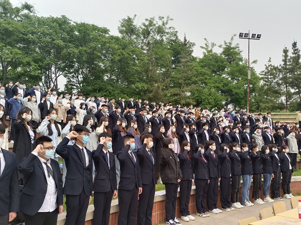 团歌嘹亮,青春激昂。5月10日下午4时,bat365中文官方网站在水上广场为2名新团员举行入团仪式,bat365中文官方网站团总支书记靳雪银、各年级辅导员及2020级、2021级全体学生到场参加。