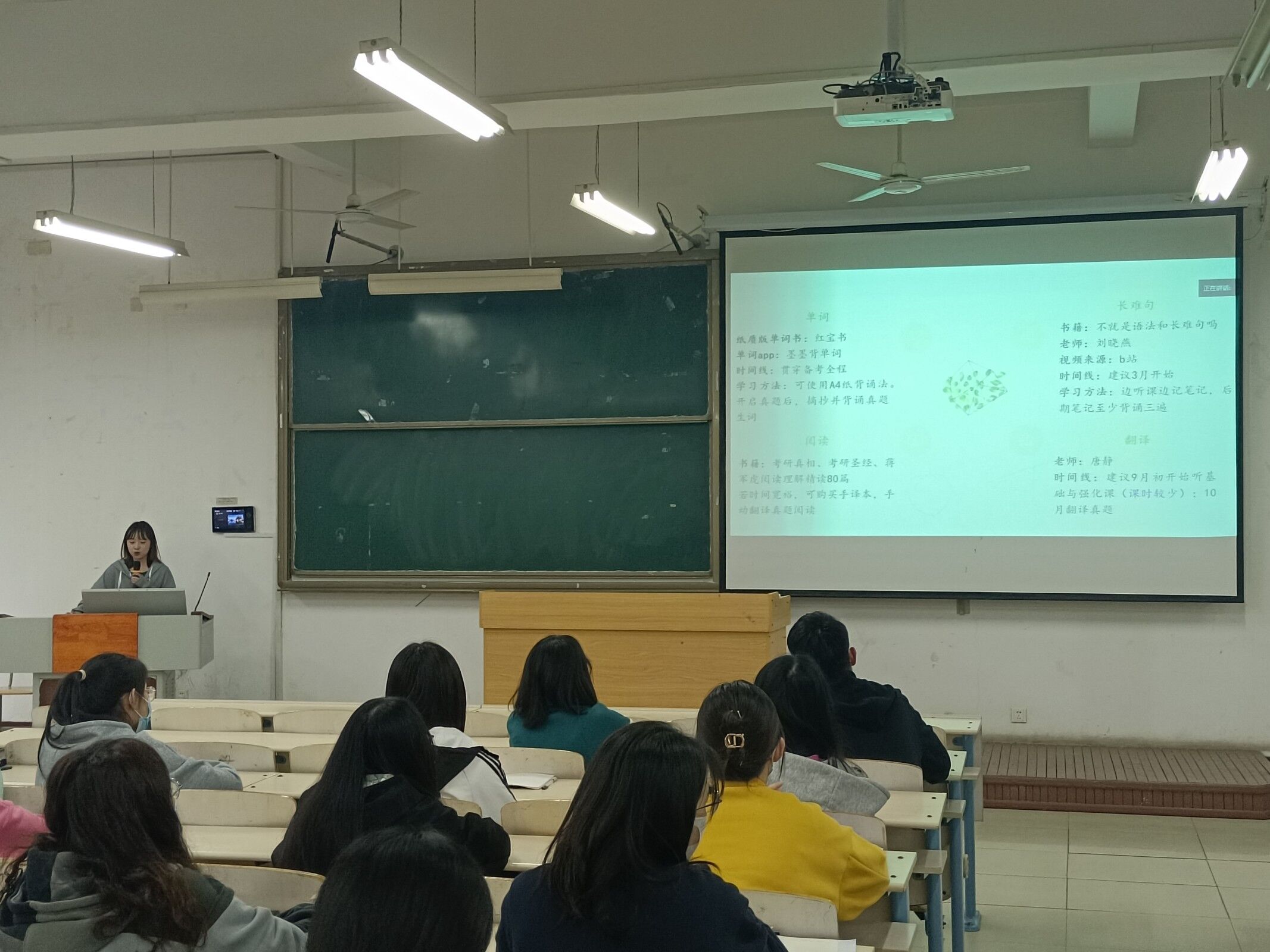 此次报告会给正在积极备考的同学指明了方向,并提供了宝贵的经验,使同学们对考研过程有了一个更具体、更清晰的认识,对考研的复习及准备过程更加有把握,为以后顺利考取研究生打下了良好基础。