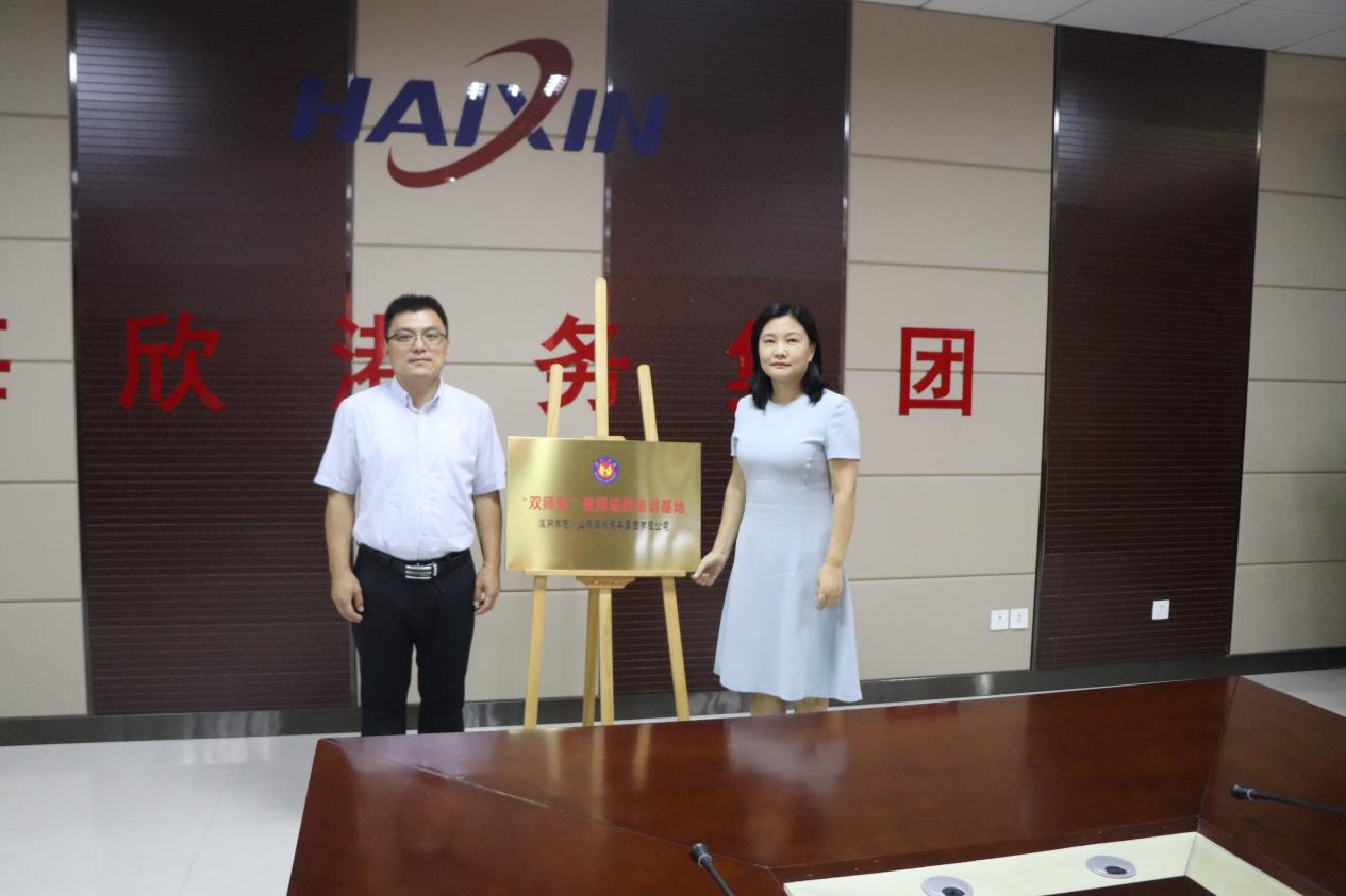 8月12日上午,bat365中文官方网站“双师型”教师培养培训基地挂牌仪式在山东海欣港务集团有限公司隆重举行。bat365官网党总支书记张健、院长韩春艳、副院长李永,东营海欣能源科技人力资源部部长郭政、副部长孙孟媛,山东海欣港务集团总经理助理王振山等参加挂牌仪式。
