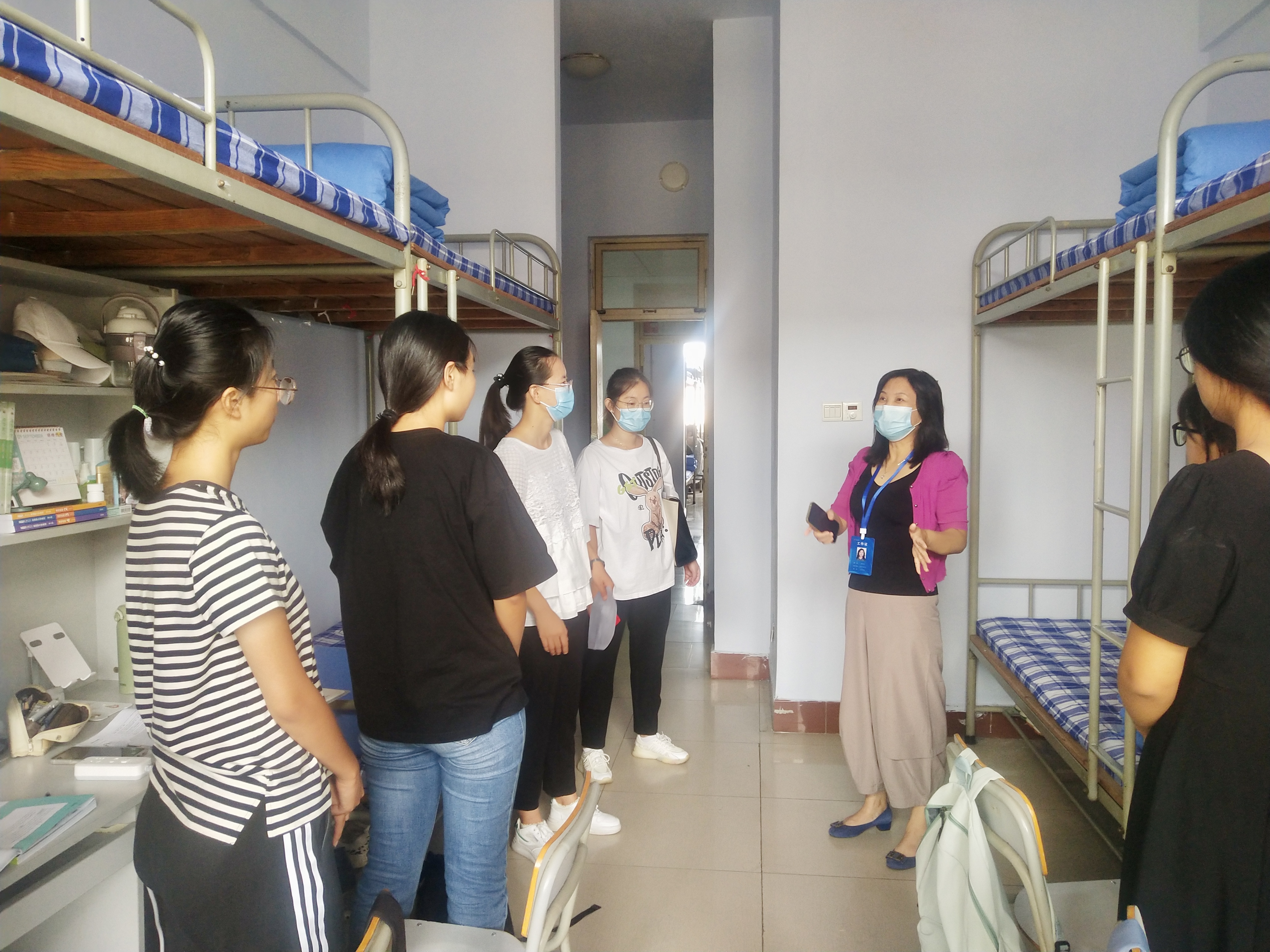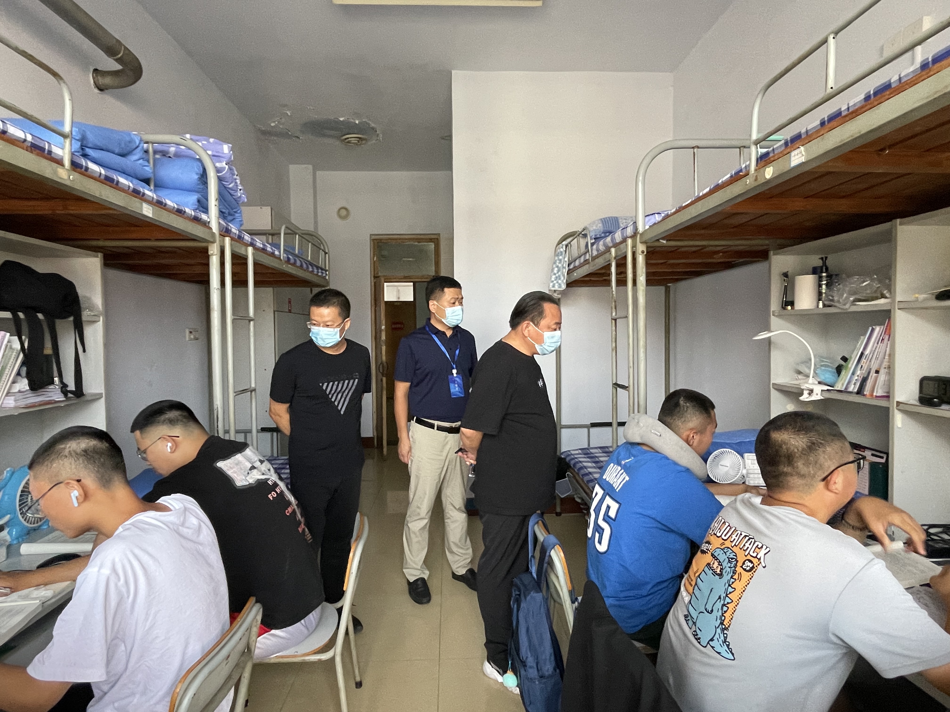 走访期间,学院领导深入各年级宿舍与同学们亲切交谈,详细了解相对封闭管理期间同学们的思想动态、线上学习和日常生活情况,并就同学们关注的问题进行耐心细致地解答。在走访每个宿舍过程中,学院领导老师们都叮嘱同学们自觉遵守防疫要求,加强自我防护,保持良好的宿舍安全卫生环境。此外,还鼓励同学们充分利用自习时间加强学习,巩固线上所学知识;学习之余增强户外体育锻炼,调节身心状态,以更好的状态迎接新学期。院领导亲切的关怀让同学们倍感温暖,纷纷表示会理解和积极配合学校疫情防控要求,做好个人防护,规范生活作息,认真学习,主动担当作为,做新时代合格大学生。