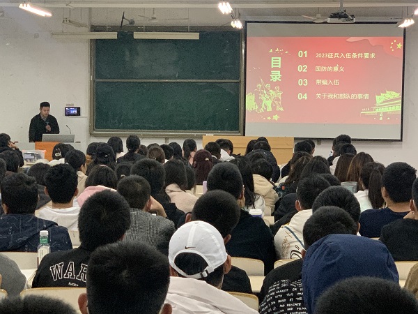 为深入贯彻习近平强军思想,进一步落实国家相关征兵工作要求、推进国防和军队现代化建设,帮助学生全面了解征兵政策,激发学生积极投身国防建设意识,2022年11月13日晚上七点,bat365中文官方网站于工科楼2-112教室举办2022年征兵入伍事迹主题宣讲会。本次宣讲会邀请到退伍军人2016级公管班徐春涛及2019级安检班李佳宁进行宣讲,bat365中文官方网站辅导员王珊珊、陈龙刚老师以及2022级同学全体到场参加。