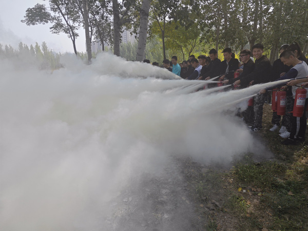 活动伊始,杨玉杰科长为同学们系统的讲解了消防安全基本知识,同时详细的介绍多种灭火方法、消防设备器材操作以及火场常用逃生方法等。随后,杨科长通过讲解校园内发生的真实火灾事故案例,让同学们意识到时刻树立防火安全意识,注意排查日常生活中火灾隐患,防患于未然,把消防安全作为头等大事来看待。最后,进入灭火实操演练环节,现场布置火灾模拟现场,杨科长边指导边实践,让学生进行灭火规范操作,部分同学对灭火器进行了试用操作,同学们按照“一摇、二拉、三喷”的使用要领,对干粉灭火器进行了实际灭火操作,整个演练过程有条不紊,实用性强,让同学们对初期火灾的应对措施有了更全面的认识。