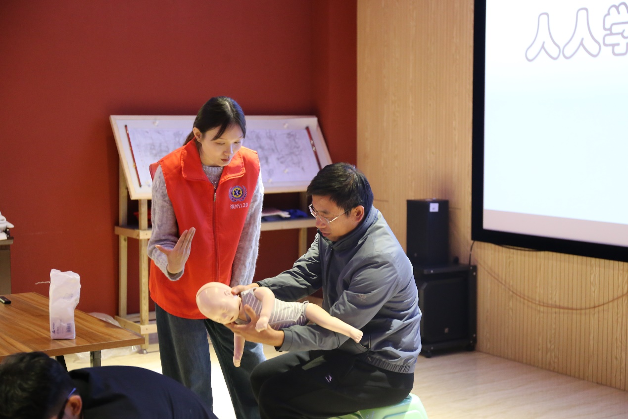 bat365中文官方网站的全体党员同志在黄河社区刘清远主任的陪同下,依次参观了黄河社区的健康小屋、红色影院、活动厅等功能区,进一步了解了黄河社区服务站的基本情况及各项党建工作的开展情况,双方还就“双报到”“微心愿”的工作细则进行了互动交流; 随后,一行人来到党员活动室,共同参与黄河社区紧急医疗救援指挥中心工作人员开展的应急救护知识与技能培训系列活动,通过实例讲解、示范操作、现场演练等形式,围绕常见伤害的急救处理、心肺复苏、海姆立克急救法、互救知识等进行知识技能培训,现场为大家演示了具体操作步骤,全体党员不但聚精会神倾听了医护人员的讲解,而且积极参与实操练习,专业人员一一给予指导,及时纠正急救误区。