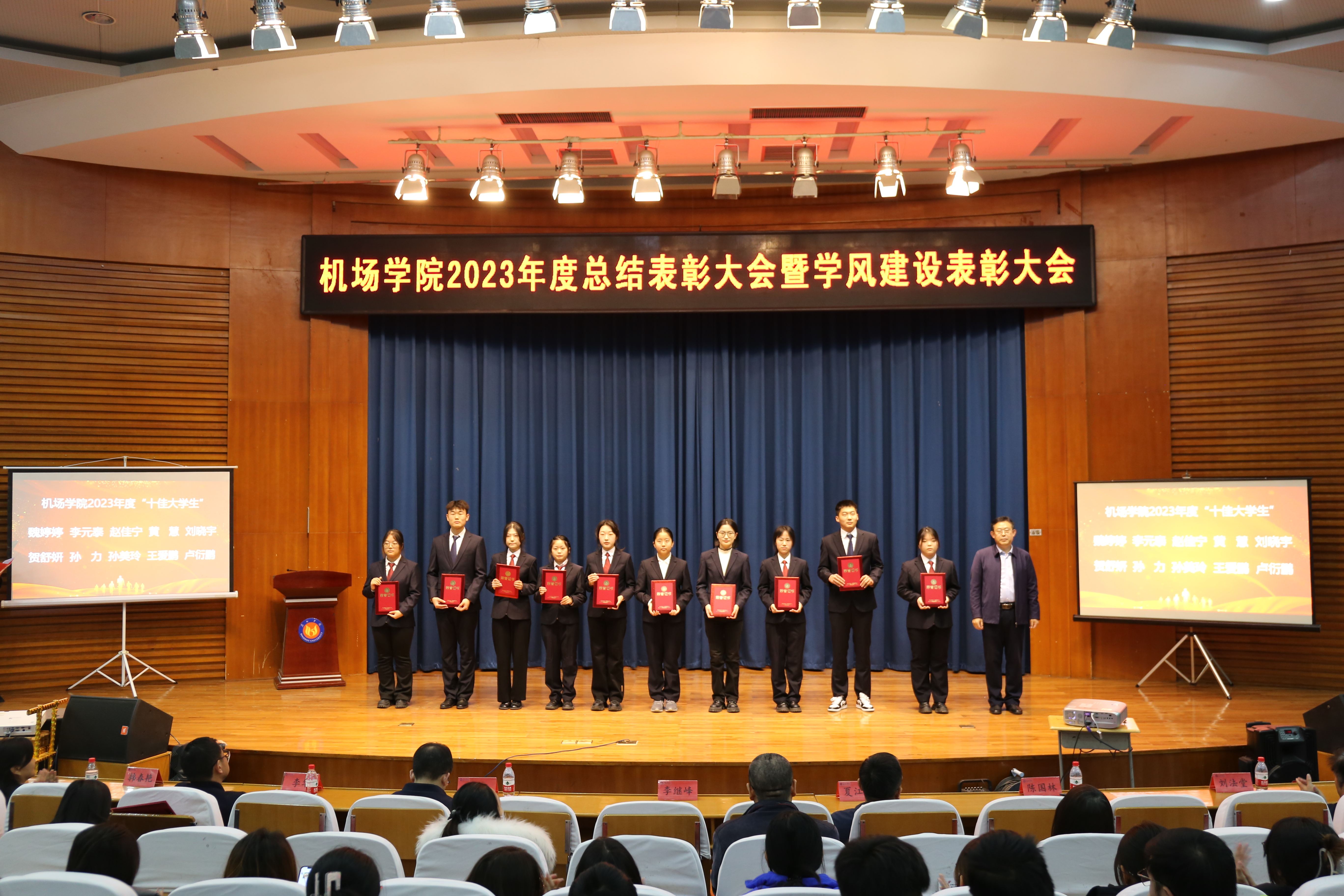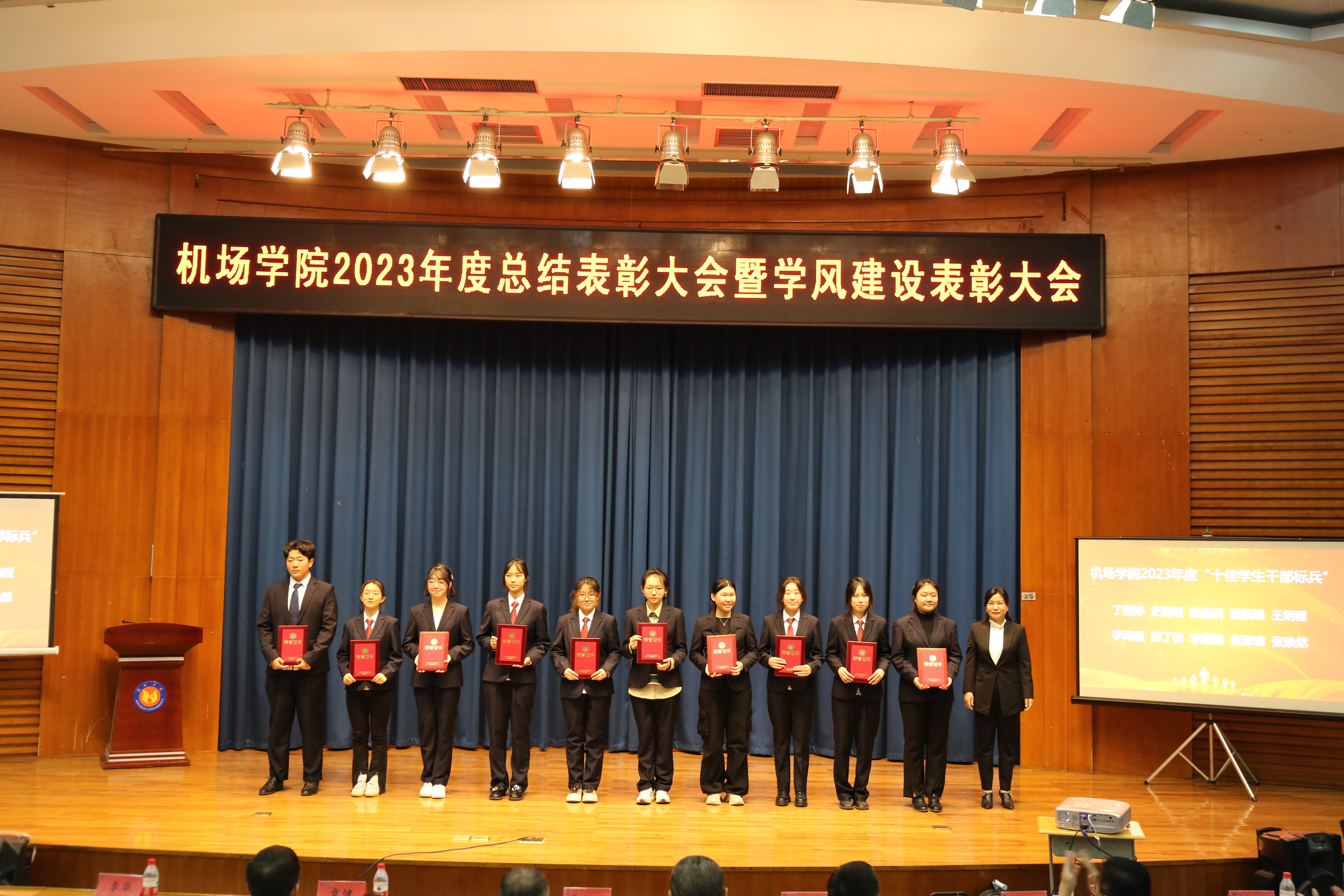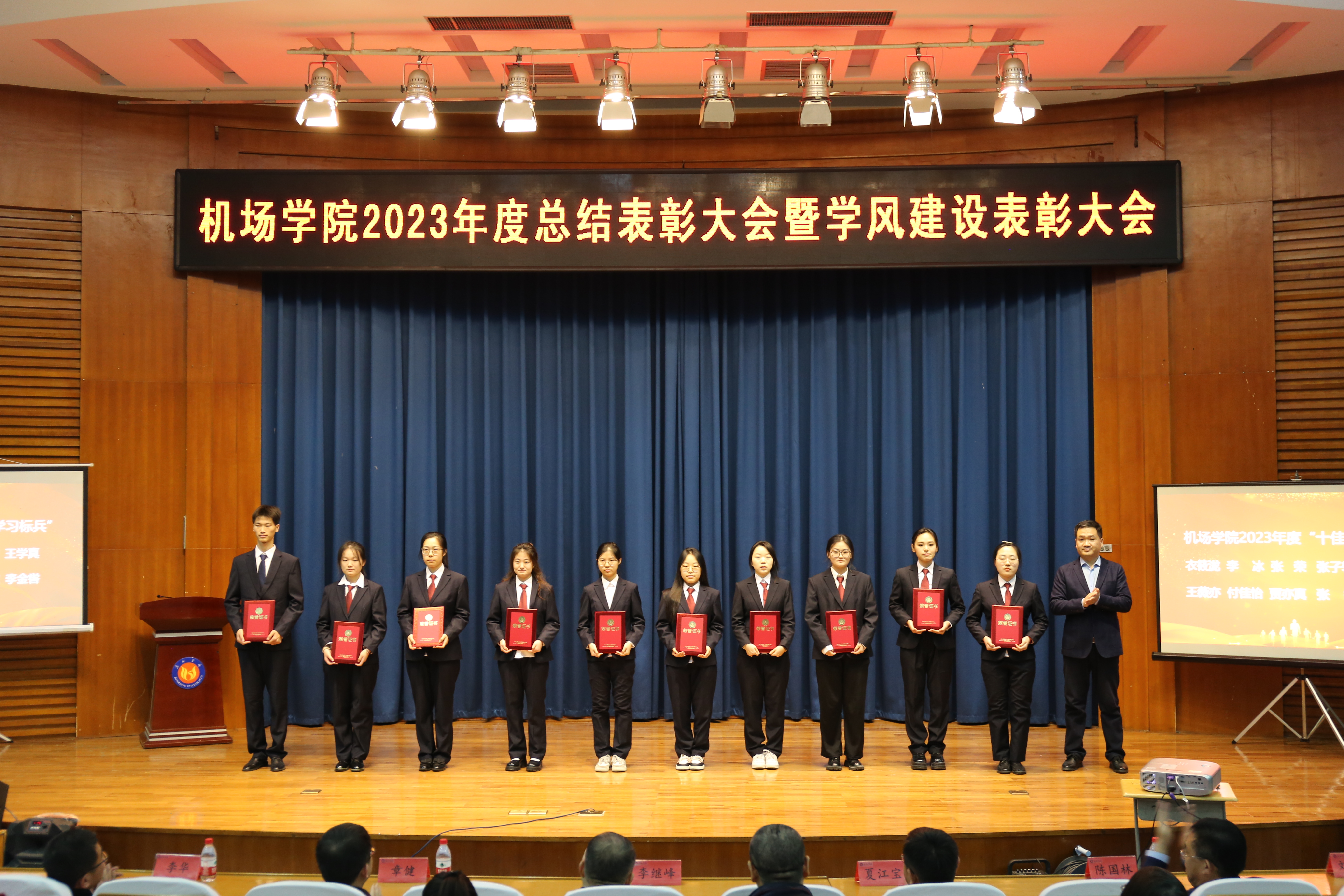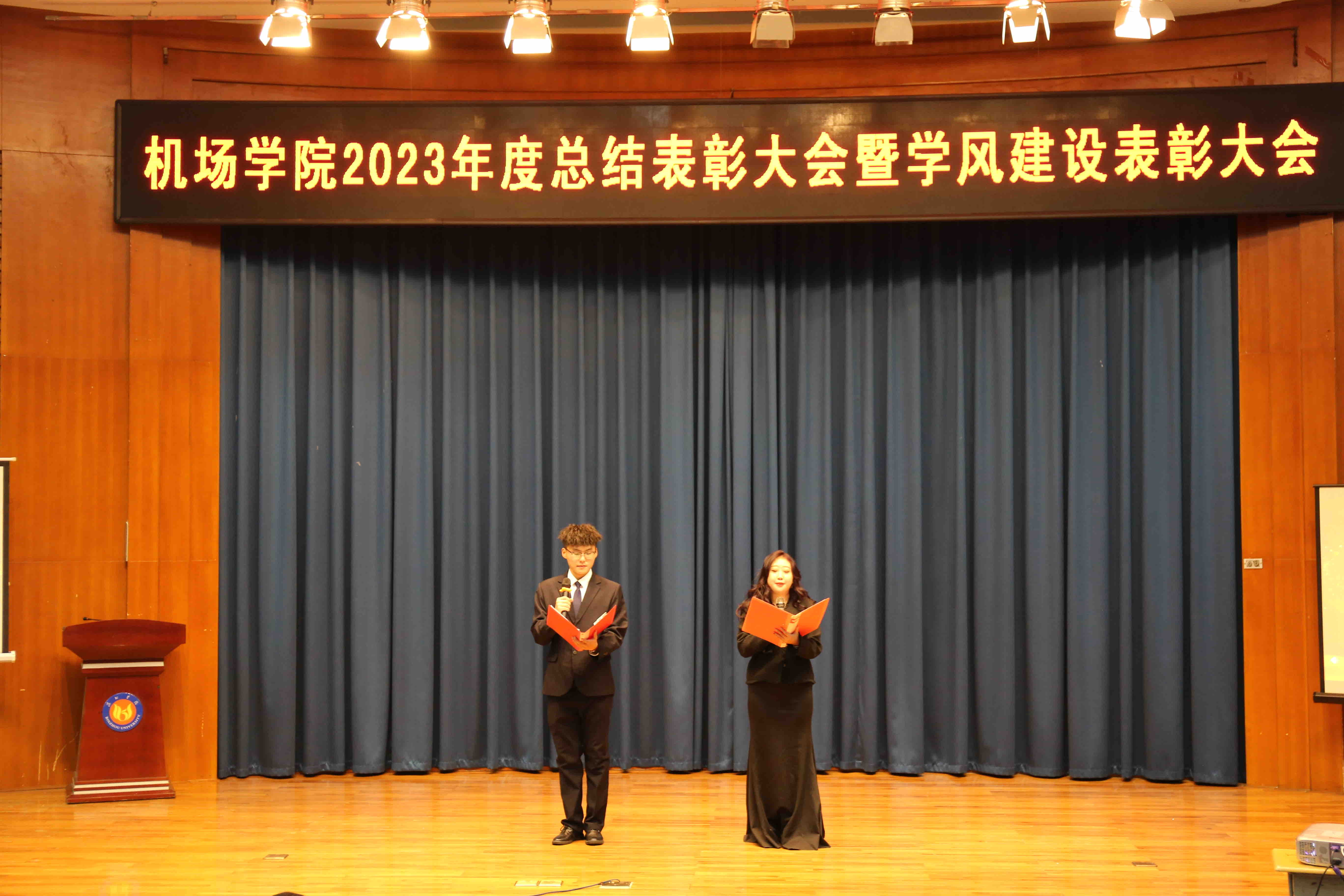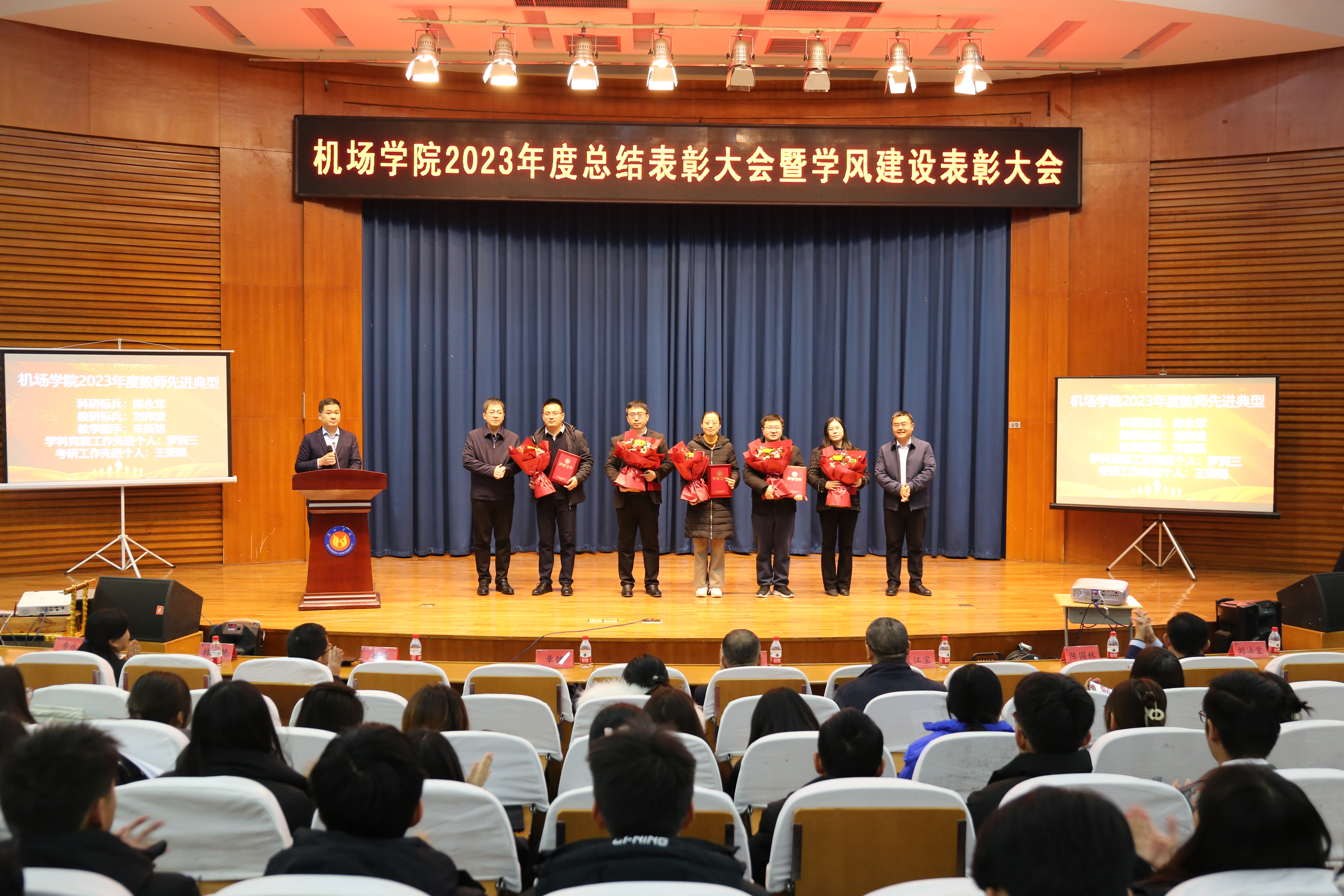 院长韩春艳总结讲话,她对过去一年学院围绕学校“1+168+1”工作体系在教育教学、科研创新、学团管理、志愿服务等方面取得的显著成绩给予充分肯定,对全体师生的辛勤付出表示衷心感谢。她指出,受表彰的师生和集体在全院工作中起到了带头作用,为学院事业发展做出了积极贡献,希望全体师生以他们为榜样,攻坚克难,争先创优,学院将继续坚持以人才培养为核心,深化教育教学改革,加强学风建设,提升教育教学质量,为我国民航领域发展培养更多高素质的应用型人才。