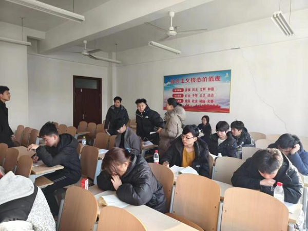 为了进一步确保新学期学生能够提高课堂学习效率,充分利用自习时间,加强学风建设,2月26日,bat365中文官方网站党总支书记陈国林、院长韩春艳、副书记刘法堂,带领全体辅导员走进教室,督导上课、自习情况。