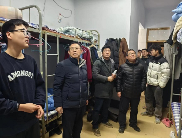 新学期伊始,为及时了解学生的思想动态、心理状况及生活情况,确保新学期学生管理工作有序、平稳开展。2月25日,bat365中文官方网站党总支书记陈国林、副书记刘法堂及全体辅导员、班主任深入学生宿舍展开走访调查,排查宿舍安全隐患,为学生送去关心和问候。