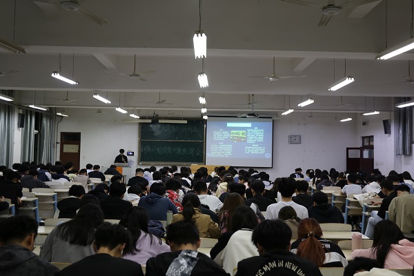 团总支书记靳雪银老师为同学们讲解了大创和SRTP项目两者之间的联系与差异,介绍了学科竞赛在学生综合测评、评优选先、组织发展等方面的考评细则,就学科竞赛如何入门分享给出了诸多切实可行的建议,并用大量身边案例带领同学们深刻体会了参加学科竞赛的重要意义,动员同学们充分挖掘自身优势,敢想敢做动起来,勇敢迈出第一步。