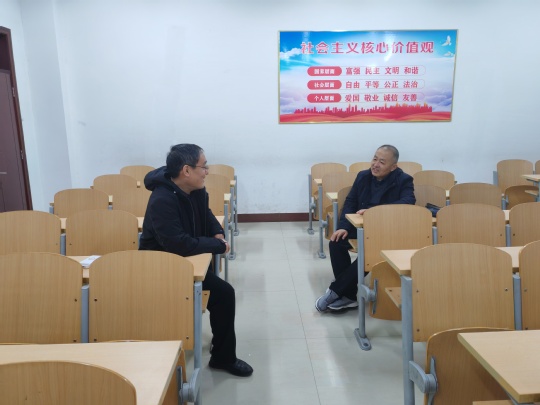 随后,李继峰与两名教师代表进行谈心谈话,详细了解了老师们在学院所承担的工作、所教授的课程、科研成果产出和未来发展规划等,耐心询问了老师们的家庭情况、目前工作生活困难、对学校发展的意见建议等。李继峰勉励老师们要不断提高政治站位,大力弘扬教育家精神,以“功成不必在我,功成必定有我”的使命担当,将个人成长主动融入学校事业发展大局,立足岗位,贡献力量。