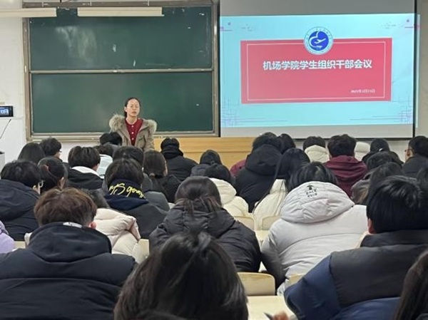 在学生组织干部例会上,各部门围绕航空文化节筹备、假期前后工作衔接及日常考勤管理等进行汇报,分管辅导员分别进行补充和强调。随后,党委副书记对全体学生干部提出三点要求:一要增强责任意识,强化学生干部担当;二要坚持学习与工作“双线并重”,以高标准推进学生会建设;三要以新学期为契机,科学规划工作安排,不断提升工作执行力。