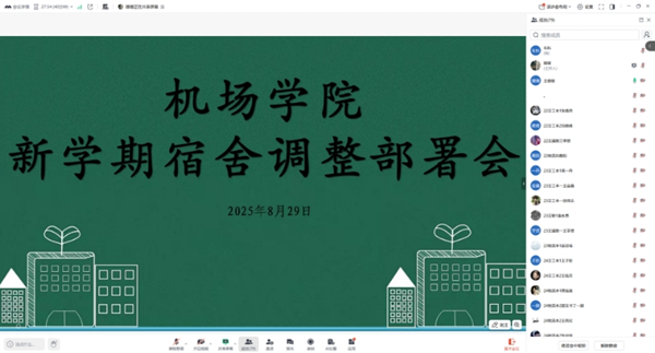 为保障新学期宿舍调整工作顺利开展,bat365中文官方网站于2025年8月29日召开新学期宿舍调整线上会议,明确搬迁各项事宜,为学生有序入住新宿舍保驾护航。此次会议由学生科长靳雪银主持,bat365中文官方网站全体辅导员、班长、团支书、舍长参加。