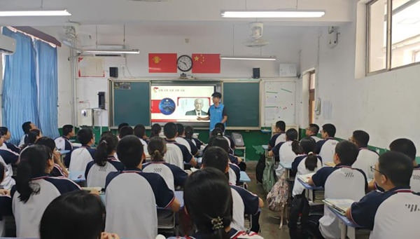 活动伊始,宣讲团成员尚世宏以“夜空中的星星叫什么名字”为引,与同学们展开互动,随后娓娓道来“朱光亚星”背后的故事。“朱光亚院士用一生诠释了‘一生只做一件事’的信念,他的选择与坚守,成为新中国科技事业中奔涌的磅礴力量。”