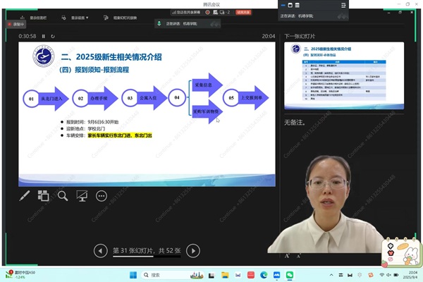 会议详细介绍了报到流程,为新生们报道做了充分准备。同时提醒学生要提前做好心理和身体修整,军训期间注意休息,如有不适及时告知老师。此外,对与学生息息相关的学分制学费标准、学生资助、综合测评以及大学生应征入伍等政策进行解读与强调,从报道流程到生活关怀,从培养规划到安全提醒,会议不仅让家长透彻了解了学院,更以细致入微的安排,让家长真切体会到学院师生的诚意与暖心。在会议中家长们神情专注,认真捕捉每一项关键信息,频频用点赞表达认可。进入互动答疑环节,大家更是踊跃提问,辅导员与班助们专业细致的解答,让家长们切实感受到学院对新生的满满重视。