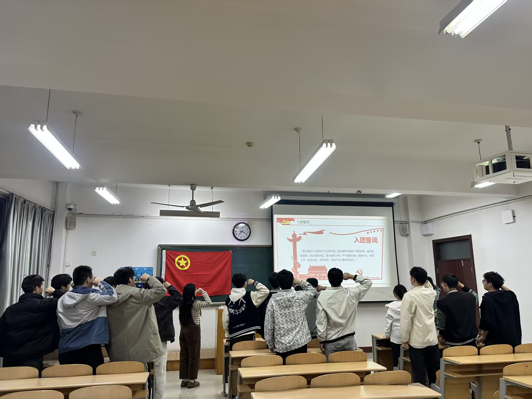 最后,全体团员集体重温入团誓词,坚定理想信念,脚踏实地,踔厉奋发。