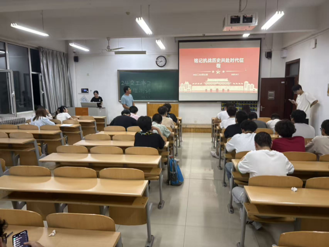 bat365中文官方网站团总支于9月7日在8教507开展了以“铭记抗战历史,共赴时代征程”为主题的示范班级团日活动,bat365中文官方网站各团支部书记及团总支委员到场观摩学习。随后各班陆续在各班班会教室开展了相关主题学习本次团日活动中,各班团支书积极响应要求,利用PPT演示、案例讲解、视频播放等多种方式提升青年团员的学习热情。同时,将理论与实际相结合,组织团员青年学习《在新时代继承和弘扬伟大抗战精神》等文章,结合内容讲解,使同学们切实学习、深入领会抗战精神内涵。